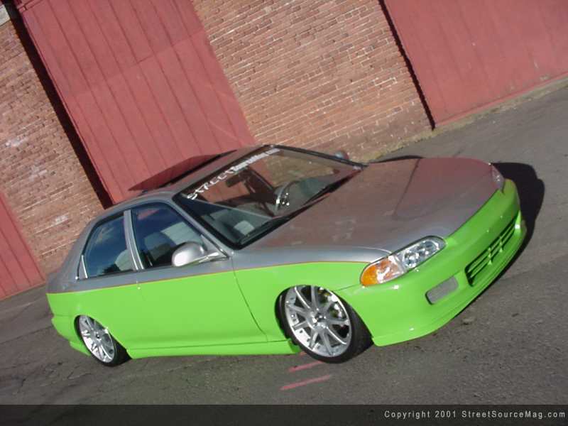 To bring Jason's Import to a respectable level, the decision was final that the use of Chassis Tech coil-overs would no longer be needed and the use of something adjustable from the interior confines would become a must.  So reaching his goals, Jason bolted up a set of Air Cylinders ran with 3/8 line to a 5 gallon air tank. After adding the new suspension, the factory rear brake drums where sent off to be chromed and steel braided brake lines where installed.