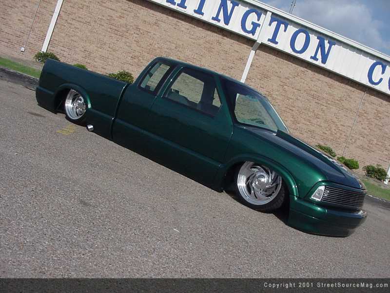 Jason ditched the stock grille and replaced it with a full phantom grille and shell, then prepped the S-10 for paint. Jason took this job into his own hands as well, utilizing his own shop, Bullock's Body Works in Whitehouse, Tennessee to lay down the Spies Hecker Meadow Green Metallic paint. Jason rolled his gleaming S-10 out of the paint booth and sent it to its next stop, the interior shop.