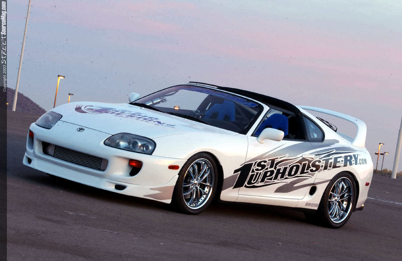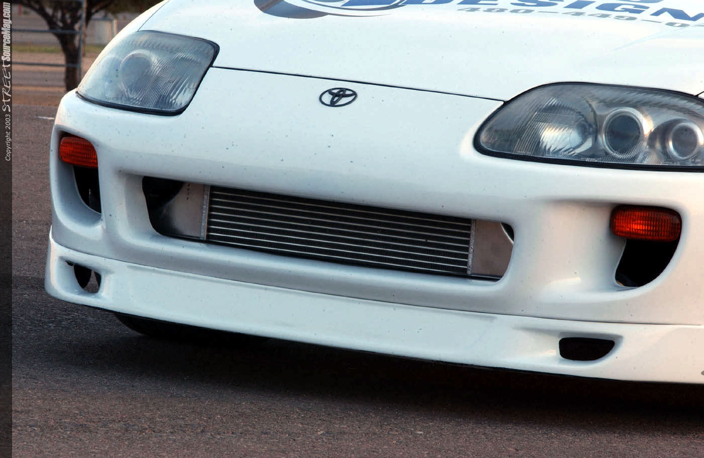 One of the first items at hand would be the current stance and shoes equipped on the Supra. So to take care of these problems the stock suspension was removed and replaced with a set of Eibach springs to bring about a more aggressive look. Next the stock shoes would be set aside for another day and replaced with a set of 18 inch Niche wheels wrapped in 245-35 Nitto 555's.   With the lower stance and new shoes, cornering would be much improved but Ian still decided to install a polished strut bar under the hood to help tighten things up.
