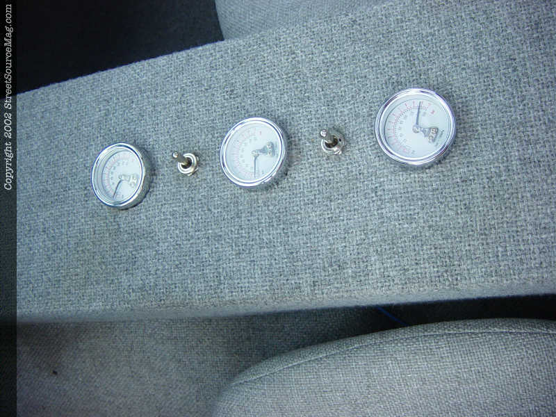 That something was a set of orange pearl ghost flames. After having Mark Tucker tape them out, Steve once again handled the gun work and finishing. Knowing that a flawless exterior alone will never win at shows, Mark has built the interior to hang with the exterior. The factory dash was pulled out and wrapped with gray tweed and had a custom gauge cluster built with Auto Meter gauges.