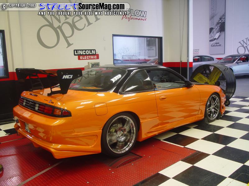 With the body aerodynamics in place it was time to change up the paint. The main color of choice Neil would go with would be a Dupont paint of candy orange. To get the correct color needed it would take 1 base coat of white, 4 coats of orange with 2 coats of clear. The roof would then be painted Black.   With the paint applied there was one item needed to help set it off. For that Neil would bolt on a set of Advan Model 5 Original Design Twin 5 Spoke (Bright Chrome) wheels.