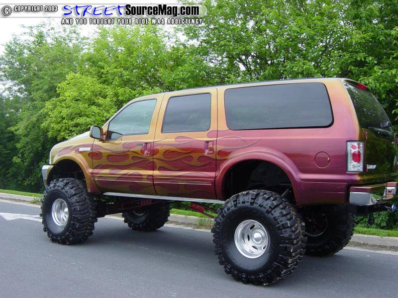 When it comes to finding time outside of work to build a custom, most people run short. That's not the case for Paul Price from Haymarket, Virginia. Paul happens to own and run Unlimited Auto Body and not only does crash repairs, but also does custom work for customers. When the day is over and the "paying customers" cars are put away, its time to tinker on his own project, a 2000 Ford Excursion. Most people would think that it's a good thing to have your own body shop, but it also makes for long days due to the fact that you personal vehicle has to wait till after hours in order to pay the bills. Paul put in long nights and weekends for over two months in order to get his Excursion the way you see here. This truck actually started out as Paul's wife's truck, but she had trouble getting it around the grocery store parking lot and through McDonalds drive through. When Paul went to trade it in to get his wife something smaller, he found out that the market on full size SUV's had completely died and the dealer didn't want to give hardly anything for his Excursion. Being pretty much stuck with it, he decided to take it from his wife and tinker with it a little and get her something else.