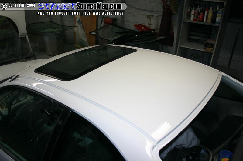 Tools Required:1) Safety glasses 2) Spot Welder/Welder 3) Spot weld drill 4) Hammer 5) Dolly 3) Spot weld breaker 4) Acid Brush 5)Grinder 6) Misc sockets, screw drivers etc. Materials Required:1) Panel Bond (3M) 2) Grinding Discs 3) Sealer 4) Etch Prime 4) Prep materials 5) Paint 6) Clear 7) CompoundThis install took about 2 whole days. Do not attempt to re-skin your roof if you don’t have any knowledge of how to use any of the tools mentioned. Also do not attempt to re-skin your roof if you don’t feel that you are able to do it safely. Only thing left do to is enjoy it!