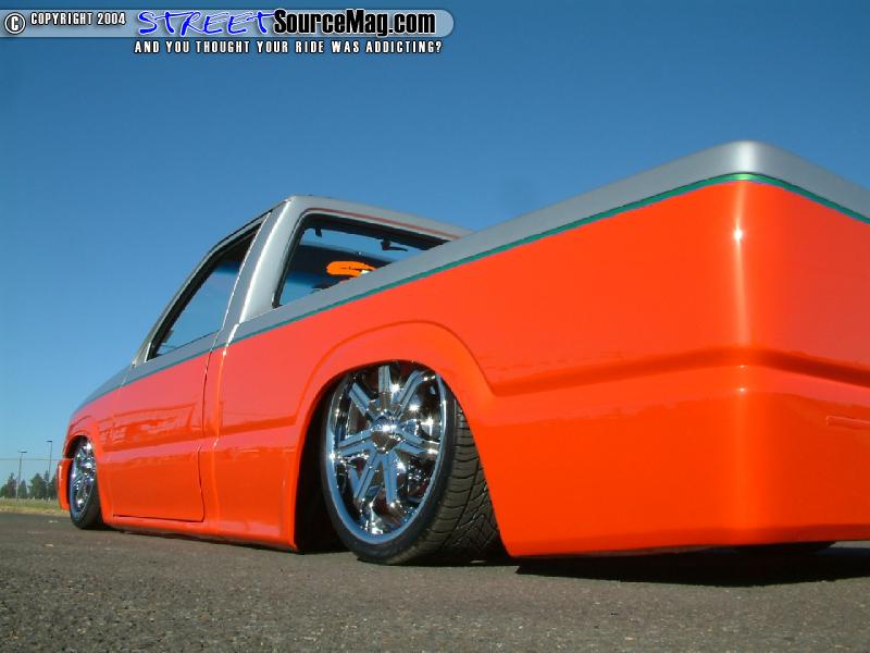 Next the cab pillars would be shaved along with the doors being notched to match the new cab pillar contour. The mirrors would then be shaved along with the inner door lock, all seams, corner markers and cowl. Once the bodywork was complete the Mazda would be sprayed with HOK orange and silver paint two-tone paint job.