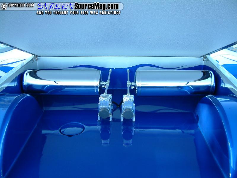For starters a Suicidedoors.com reverse 4-link would be installed. Next two Viair 380 compressors, eight ½” E Valves 470’s, 4 Contitech 2600lb bags and two Chrome 5 gallon tanks would be set up and all ran with ½” hard line. Now having the ability to lay the body on the ground, the fenders would help tuck the 20x8.5 Boyd Coddington turbines wrapped in 225/35 Nitto rubber.