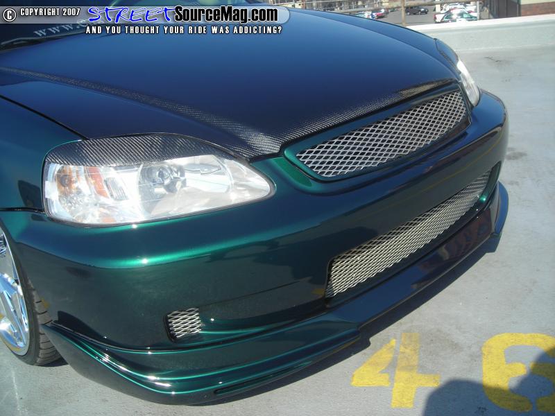 When asked his reason for building the car featured here he responds, “Because in Springfield nobody has taken a Civic this far”. The exterior touches on this car are as clean as they come. A Wings West body kit takes the place of the factory plastic and a JSP carbon fiber hood installed. Body mods on this custom import include a fully shaved truck lid with flip kit and angled license plate box, all emblems shaved front and rear and front bumper smoothed.