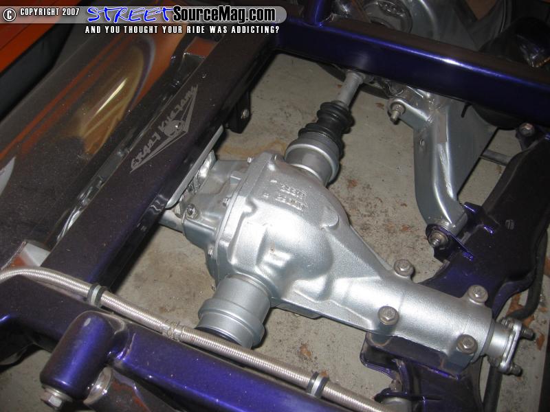 Starting with the chassis Ryan would utilize 2x3-boxed tubing for a custom frame for a stock floor body dropped appearance. The frame would then be powder-coated candy purple. Next a 300z rear end would be set into place. Next Ryan would install a set of tubular upper control arms, Slam Bags at all 4 corners, all stainless hardware, 9-gallon chrome tank and 2 Viar 450s. Having everything set into place Ryan would then have all of the suspension either painted VW silver metallic or chrome plated. With the body now flat on the ground the fenders would welcome in the new 18-inch KMC Guidos wrapped in Nitto 215/35zr18.