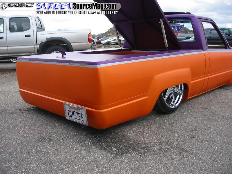 Ryan would then move on to the exterior where many items would be removed in favor of sheet metal. With pretty much everything shaved Ryan would install other items such as a Haggon gas door, Hi-Tech LED’s, rag top, 2003 front end, custom core support, custom firewall, frenched brake booster, and half capped bed with aluminum tunnel cover on air cylinders.