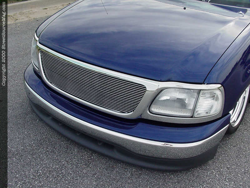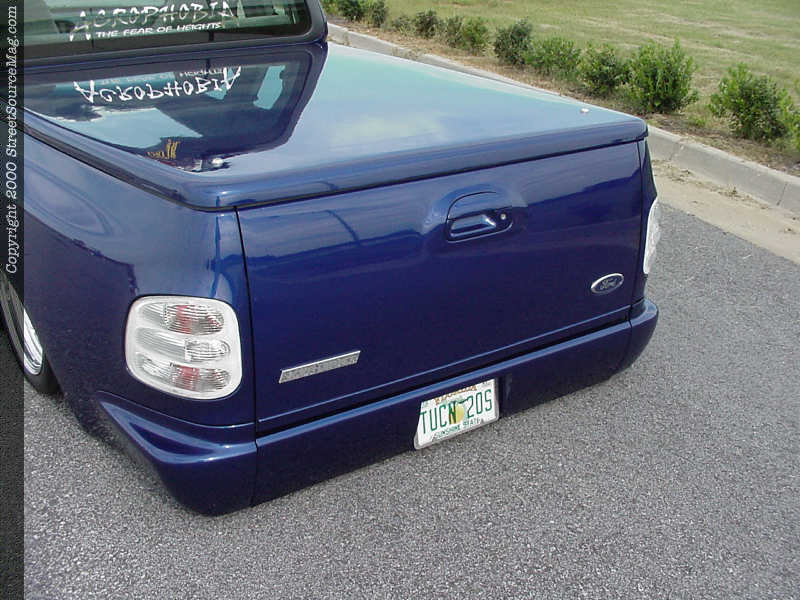 To handle the body modifications that Dave had in mind, RAW (Rhodes Auto Works) in Sanford, Florida was contacted and put in charge. In front, a 2000 Ford bumper was put in place along with a Trenz billet insert. In the rear, a Sir Michael’s steel rollpan was welded in place to smooth things out. The roof of Dave’s Ford was cut out and a huge sliding ragtop was installed. The whole truck remained the stock color, which is Moonlight Blue.