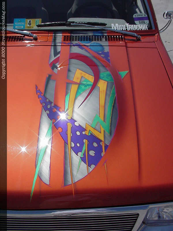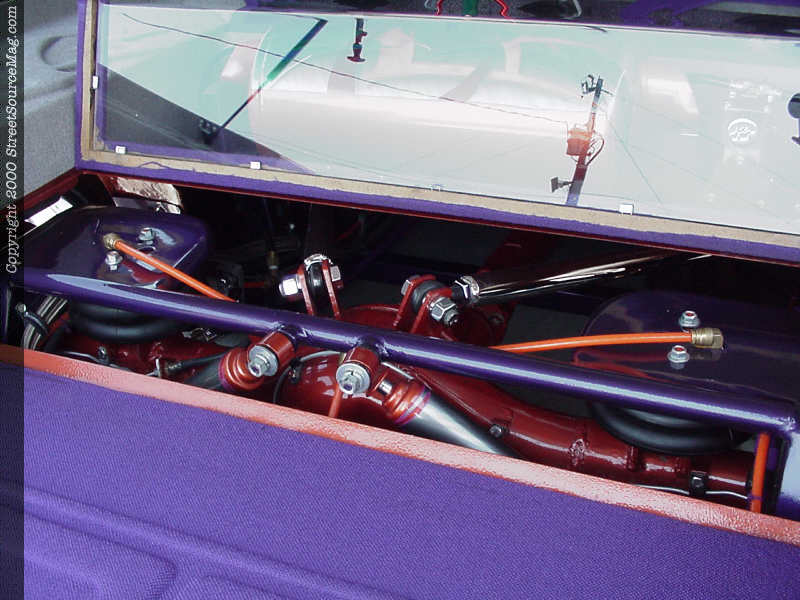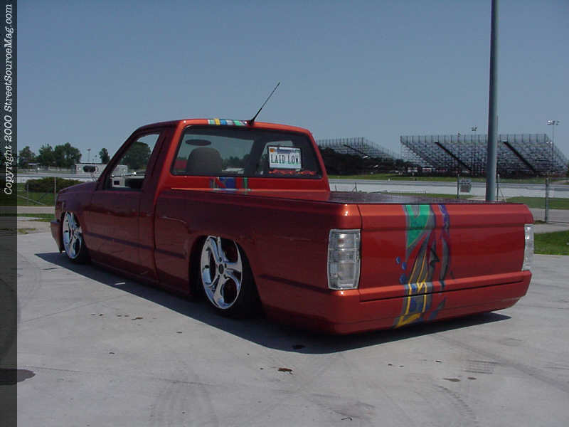 To get to that lowest of low stance, Shane turned to Greg Taylor and TNT Automotive Specialty in Waynesboro, Virginia for help. In their hands, Shane’s Mitsu was first treated to a step notch and bridge in the rear. The leaf springs were tossed and a chrome custom made 4-link was put in its place. 2600lb Firestone airbags were then installed along with Toxic Shocks to smooth out the ride. Up front, Greg installed 2” Superior drop spindles and 2500lb Firestone air shocks. Custom front shock mounts were created and Ground Control shocks bolted up. Fast actuating valves were installed and give Shane full control while behind the wheel of his Mitsu. To make the judges, as well as others, turn heads, Shane chromed the sway bar and strut arms, installed a ’89 RX-7 fuel tank and painted the entire undercarriage Ford Probe Purple. Laying frame was nice, but it wasn’t quite enough so TNT Automotive performed a 2-½ inch body drop. Laying body, Shane kept going with his Mitsu by moving on to the body.