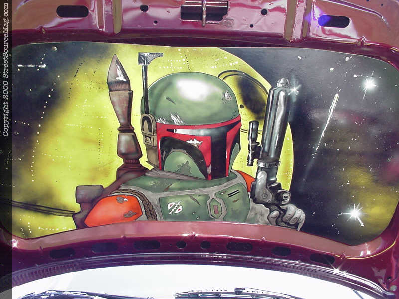 | Several murals of Jason’s favorite character from Star Wards, Boba Fett, can be found, including a huge under-the-hood mural. |
