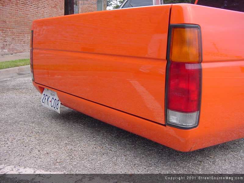Body work started out in Austin TX at Custom Car Crafters, were David was working at the time. With the help from coworkers David swapped front ends by updating the 91 to a 95 and swapped the stock bumper for a 4 runner. While the front end was complete David started doing the bodywork in which he shaved everything that you could think of including doors, locks, tailgate handle, antenna, etc. etc.