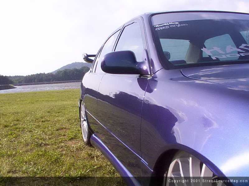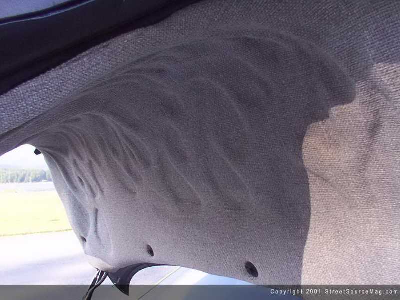 Terence built all new custom door panels and added flamed graphics under the tweed in the front doors and JL Audio logos in the rear doors. The factory carpet was swapped for a new lighter shade of gray carpeting to blend with all the light gray tweed throughout the car as well as the custom made floor mats.