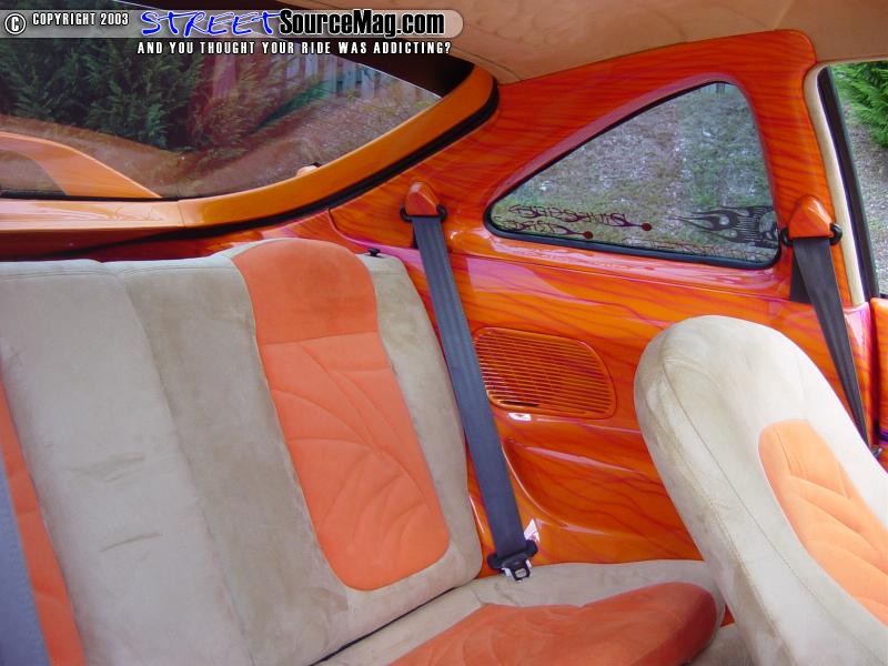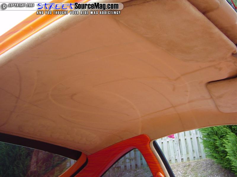Now that Jonathans Type R had a paint job that could take on ANY paint job in the scene, it was time to make the interior match. The seats, headliner and floorboard were all stripped in favor or a new coating of tan and orange suede.