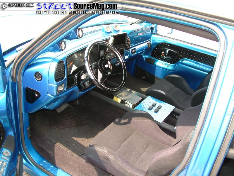 Seeming that he drives this from show to show, it was a must that good electronics bee installed. First off an Eclipse 7002 CD player would be found running sound to the Kicker separates in all doors along with the two 10-inch Kicker subs found mounted into the smoothed painted speaker box.