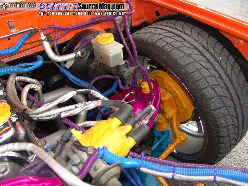 The engine would be the last item touched by Chris to finish things off once and for all. For starters a Flex-A-Lite electric fan, chrome 120 amp alternator and Vitek plug wires would help keep the Mazda engine cool, keep a good spark and the battery charged.