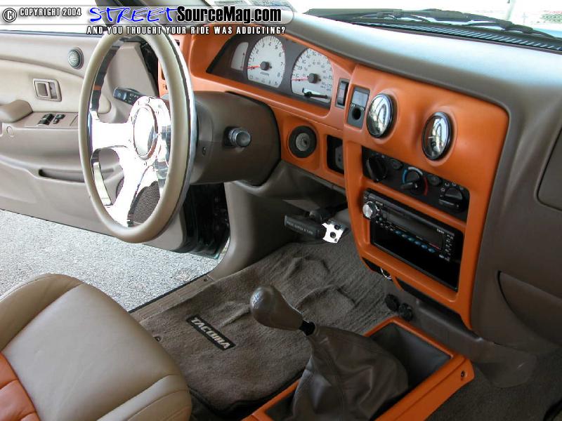Jimmy Davis at Stan’s Car Stereo in Lubbock worked the fiberglass magic and painted the dashboard, console and amp rack to match the exterior. Mark then swapped the stock head unit for a Clarion DXZ825 CD player, running tunes through Infinity mids and tweets, an Alpine R12 sub, all powered by an Alpine MRV-F540 amp.