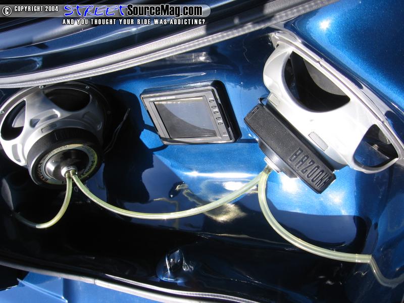 The engine would remain mostly a stock V6. To bring the custom work through out, a BBK chrome intake, BBK chrome strut brace, Optima blue top battery along with many other painted pieces and billet dress ups through out.