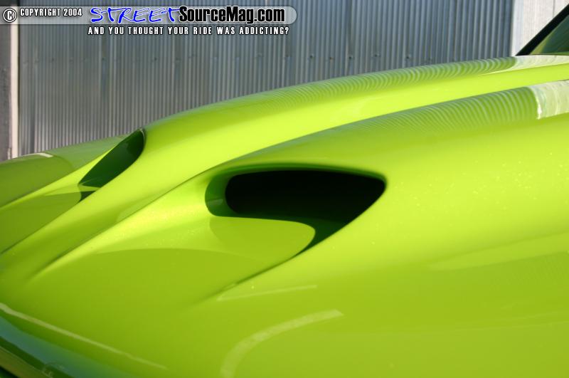 Starting with the exterior of the truck Mark knew that there was an extensive amount of bodywork that would need to be completed. Starting at the front of the truck Mark tossed the stock hood and slapped on a Ram Air II hood, and underneath it a Trenz 30 bar billet phantom grille was installed. The door handles were shaved as well as the inner fenders and body seams.