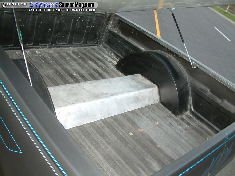 Getting the project started Ricky would first box in and notch the frame along with installing a custom cross member that would house the air tank. Bringing the truck down would be the use of a custom 3 link in the rear while a set of Belltech 2” spindles bring down the rear. Monroe shocks would then be installed to help with the ride. Stainless steel brake lines would then be installed after the frame would be painted gun metal grey.