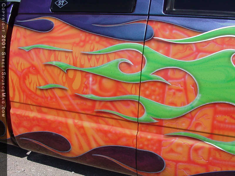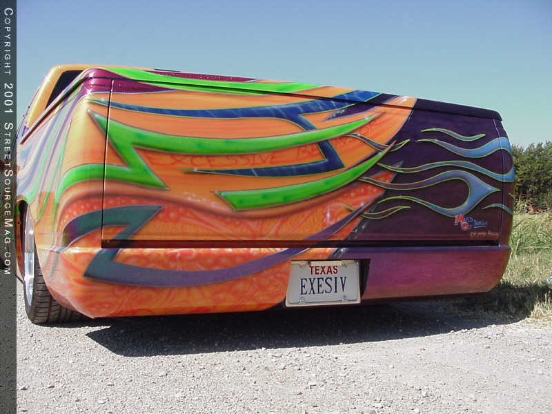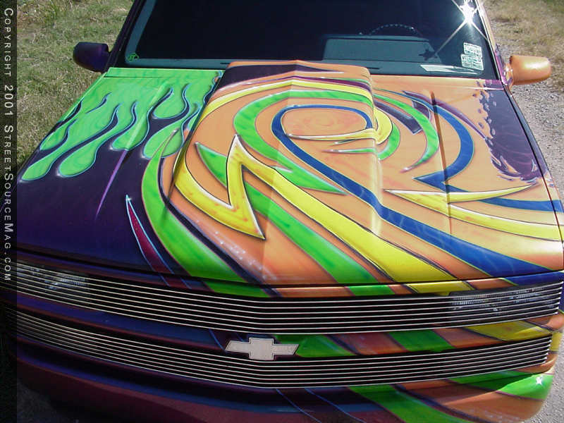 So after dramatic changes in life, it was time to take the truck to new standards for all to follow. To accomplish this, Tom relied on the professionals of Maxed Out Paintworx of Houston TX. The first thing at hand would be to bolt up a Cowl hood to give the front some attitude. Next, the front bumper was sectioned 4 inches and recessed an additional 2 inches to give the front an even smoother look. To complement the bumper work, a Precision billet grille was installed.