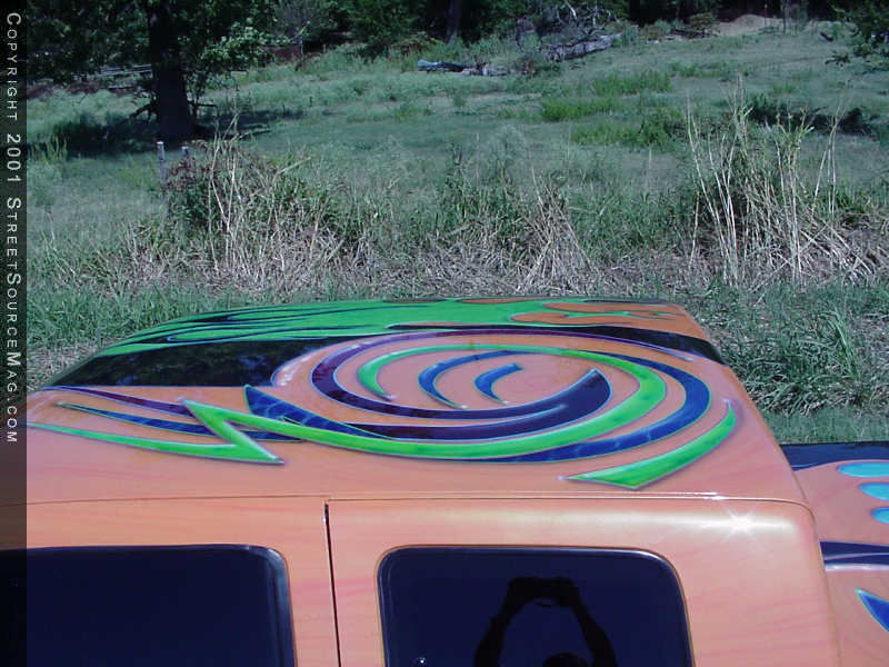 Now that the body was completed and ready for paint, it was time for Max to go crazy. With his own thoughts in hand, you can spend hours looking at all of the airbrush work on Tom’s truck. To throw people off, the paint scheme twist’s in the middle and throws out different graphics on opposite sides of the truck.