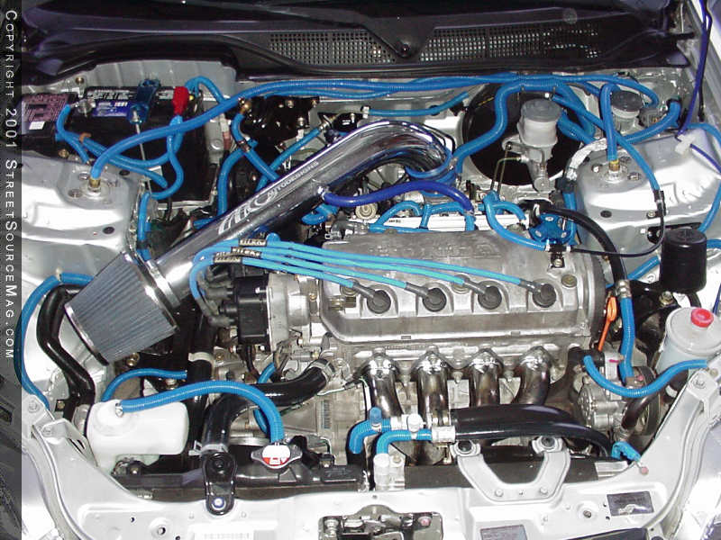 One of the first mods that he would encounter would be a brake impulse set up to adjust the speed of his lights. Now knowing that there were many things that needed to be accomplished, the next step would be to allow the engine to breath to help give added performance. So to change things up, an AC Auto-Designs intake was installed to bring power along with some eye candy under the hood. Along with the intake, a Tanabe 6 Medallion exhaust with muffler, and a Kamikaze 4 to 1 header were installed to help the engine breath.