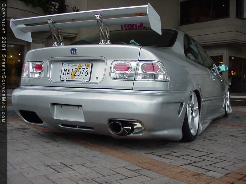But this wasn’t enough. A lot of phat rides today have the little things that help change the contour and overall look of a ride. With this in mind, the purchase of MS style side mirrors were installed along with a set of Euro “Altezza style” taillights. Little items, like these contribute to the overall change of the ride.   Everything was color matched to the stock silver color, which you can see, is a very nice choice. George and Sons in Dededo Guam did the bodywork and paint.