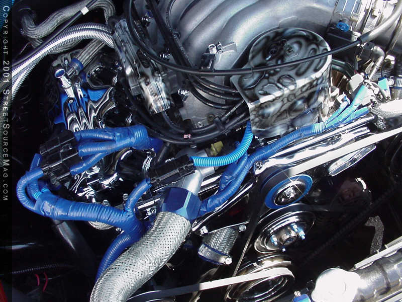 To apply the sound to the ear’s, the use of a Alpine 7832 CD player along with a clarion 920EQ were provided. Brian decided to use Alpine 6 ½’s pushed by a Rockford Fosgate Punch 100 for the high end. The subs of choice for the earth pounding bass would be a set of Orian XTR 15’s pushed by a Rockford Fosgate Punch 200. Brian installed the stereo system himself. And a very clean job Brian did. To compliment the stereo, Brian turned to Brett Mason of Arlington TX to provide the tweed expertise. While in Brett’s hands all panels where wrapped or stitched to perfection. You can also find graphics throughout the interior panels for an added flare. Brett also managed to put together a bed kit complete with the same clean tweed job. A Grant Signature series steering wheel was also installed.