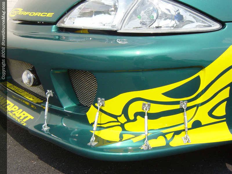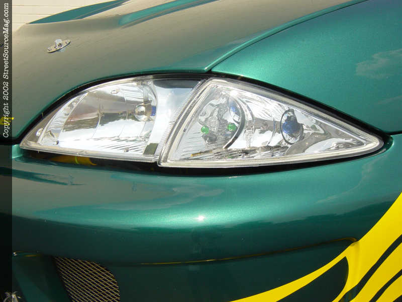 When you first look at this car you might think that it's a 2000 or newer Cavalier, but looks can be deceiving. Chris has changed out the factory '96 headlights in favor of the better-looking newer model headlights and clear corner markers. He had to trim the fenders to fit the newer lights. He also had to modify the RK Sport fiberglass hood to fit them.