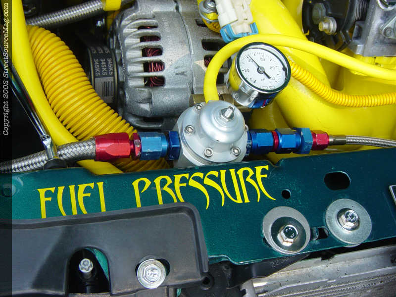 Now that Chris was happy with the look, both inside and out of his car, it was time to give it that extra little power needed to get it going. He knew exactly what he wanted before he even removed the first bolt from his engine. So after gathering all the needed parts it was time to completely tear down this mild mannered Cavalier and make it a full out (street legal) racecar, yet clean enough to still win at shows. The factory 2.4 liter wasn't going to be big enough to handle all the parts Chris had planned for the car so the engine was bumped up to a 2.5 liter. The engine has been ported and polished with JE 9.5 to 1 pistons, HD lifters and MantaPart cams. Chris has also installed under drive pullies and a 180-amp alternator to go along with his new MantaPart timing chain.  To make sure the engine gets enough fuel, a Venom fuel rail and RC Injectors were used. To round out the list of HP goodies, there is an AEM intake on a MantaPart throttle bottle, Electromotive ECU, Holly fuel pump and an AEM fuel pressure regulator. He also chose MantaPart motor mounts so they could handle all the torque the new motor mods would produce.