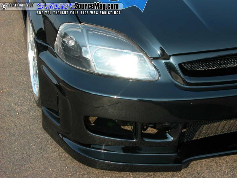 Of course what girl doesn't love to play dress up? With her car? That's exactly what Lindsay headed for as she stripped the Honda naked and opted for the Ground Designs Black Widow II kit for the hood and both bumpers. Now, no face lift is complete without the entire package, so she swapped the stock headlights for some perkier projector headlights, and grabbed some more attention in the rear with a set of 2nd generation carbon fiber Altezza tail lights.