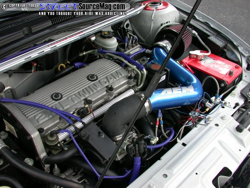 The only thing left for Jack would be some engine work to back up the aggressive stance. To manage that a set of AEM and UR pulley's, AEM intake, RK Sport upper and lower engine mounts would all be installed. Next a wet 50 shot of Nitrous Express would be installed along with a RK Sport header with 2 ½ diameter hi flow Magnaflow exhaust and Ractive muffler. A blue hose kit would be installed to help with show points when the hood is up.