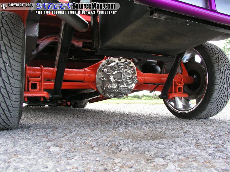 Dustin picked up his 94 Chevy S-10 for a mere $1500.00 back in 1999. After taking ownership Dustin knew that this was not going to be another average truck so he decided to go all out and start big. The first order of business was to set the frame on the ground. Dustin first ditched the factory front coils in favor of a Firestone airspring mated with a BellTech 2" lowering spindle to set the front crossmember flat on the ground.