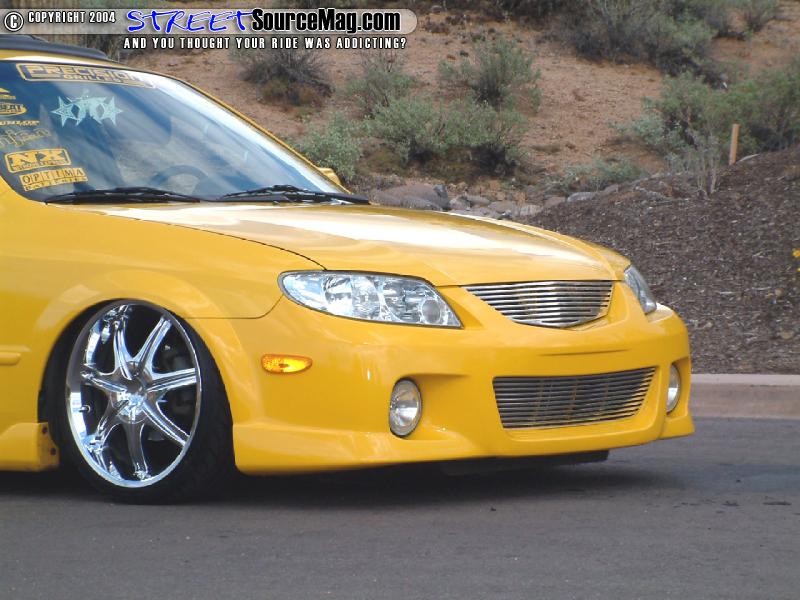 When working over the exterior Rob would keep things simple and clean. Starting upfront Rob would install a Precision Grille along with some Matrix Racing taillights out back. Being in the sun state Rob would then install a sliding ragtop. The underneath side of the hood would then be Rhino lined yellow to match the Vivid yellow paint sprayed by J-Rock of Peoria, AZ.