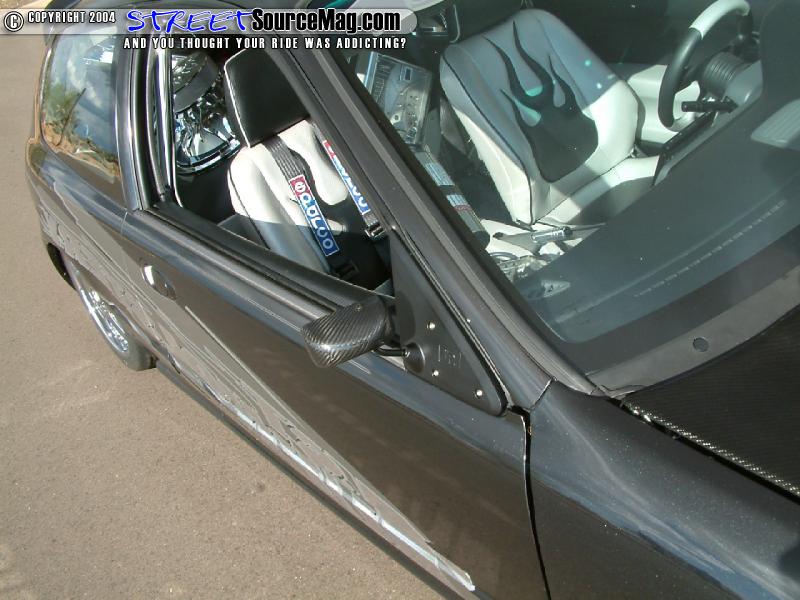 Needing a little more to the exterior a carbon fiber front lip would be installed along with a carbon fiber rear wing and rear hatch/tailgate. New carbon fiber mirrors replace the stock mirrors and a set of lambo doors were installed for added wow.