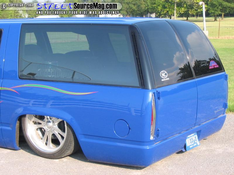 So he would fit in just right Jake decided to perform a 2.75” body drop on his Burban. After hooking up with Ted Aguliar for some help with the bodywork, Jake would next modify the exterior of his Suburban. Next a 2000 Cadillac Escalade front end would be swapped with his outdated front to give it fresh look. This front included fenders, hood, and headlights. A fiberglass grille with the Trendz billet insert would complete the front.