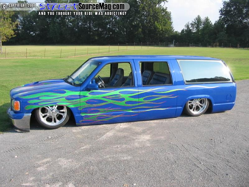 Jake would like to point out that he purchased his Suburban from a salvage yard with a front end hit. After 5 months of body and frame work it was ready for show. He’s been dragging it from coast to coast ever since he finished it including the long haul to California in it twice. He would like to thank his fellow Negative Camber club members, Katzkins, Boyd Coddington, all of his friends, all the people who helped with the build up of his Suburban, and most of all his wife who has been his co-pilot to every show. Keep your eyes open for this Suburban at a show near you, for a driven show truck its pretty damn impressive.