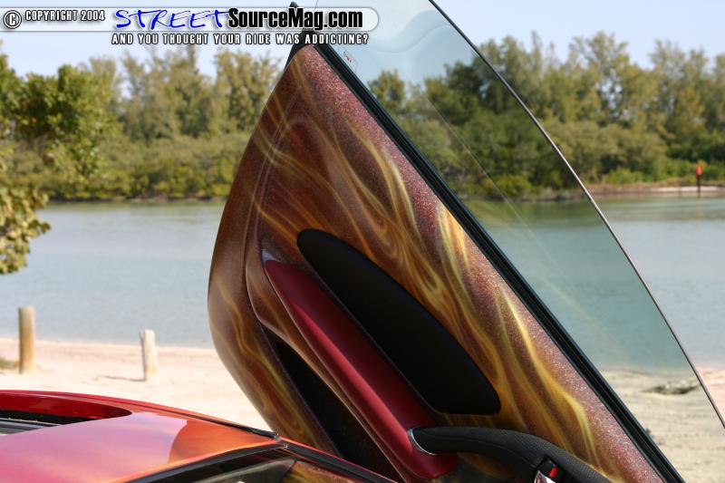 The paint on the interior matches the graphics and paint on the exterior of the car, which really brings the paint job to life. The car was also fitted with a Kenwood touch screen CD/DVD player.