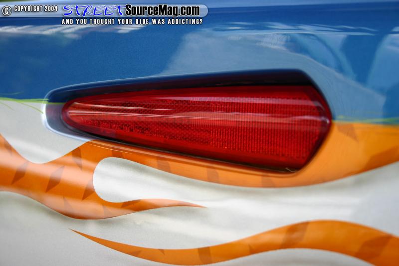 Next Ryan and Shawn brain stormed and came up with a few ideas for the exterior of his truck. First the door handles, antenna, tail lights, 3rd brake light, gas filler door, and rain gutters were all shaved off. The third brake light was replaced by a LED light bar, and the roof was fitted with s rag top.