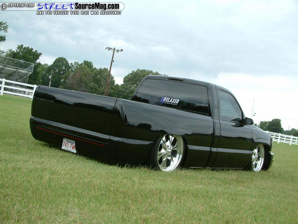 Sigler would now find his GMC tucking the 22x10 Colorado Custom Somerset wheels wrapped in 295/30 Toyo Proxes rubber. Working the exterior of the GMC, Sigler would rework a few panels. Starting up front a Stull billet insert would be installed along with shaving the door handles. Next Sigler would have the stake pockets shaved along with the tailgate handle.
