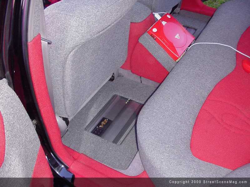 Since Tony is an electrician, the next part of his project would seem to be a walk in the park. Well, after looking through Tony’s ride, I’m sure that it took much time and a few headaches to get everything just right. One of the first things you see while sitting in the passenger seat would be his Alpine 12 disc changer control which is installed on the front part of the jockey box. To help bring out the volume would be a CVA 1005 CD player. One of the next items your eye would catch would be the DVA 5200 DVD player. If bored watching moves, Tony installed a Sony Dreamcast to help cure any boredom anyone may be having.
