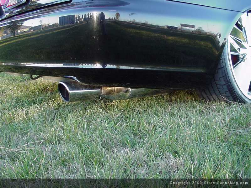 To roll the dubs around town along with all of that stereo equipment comes the stock 2.3L VTEC 4 cylinder. To help provide a little pick up, Tony added a Tenzo R intake along with adding a chrome Seabring muffler. To help with the looks of the engine Tony installed red sleeves over hoses throughout