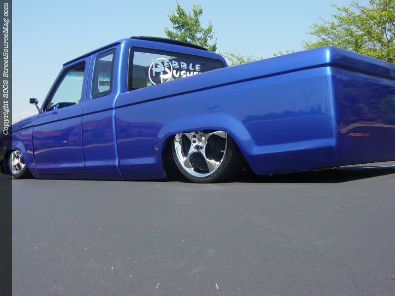 While they had the suspension apart, Chad also installed a complete air bag system and TCI 4-Link. Being Chad is a paint and body man by trade, making sure this truck had all the body mods necessary to take on the show scene was not a problem. When he got the truck, it already had some bodywork done, but that was quickly stripped out and redone to make sure everything would be perfect. Chad first did the usual and shaved the door handles and antenna. He didn't stop there! Starting at the front, the side markers on the fenders were shaved. A billet phantom grill was also added to smooth out the front end. Next the cowl was shaved and then welded to the fenders for a drastic transformation. Once you go to this level of modifications, you can't go back. Now at the back of the truck, there is a new skin along with taillight fillers and a roll pan all welded up to completely smooth off the rear.