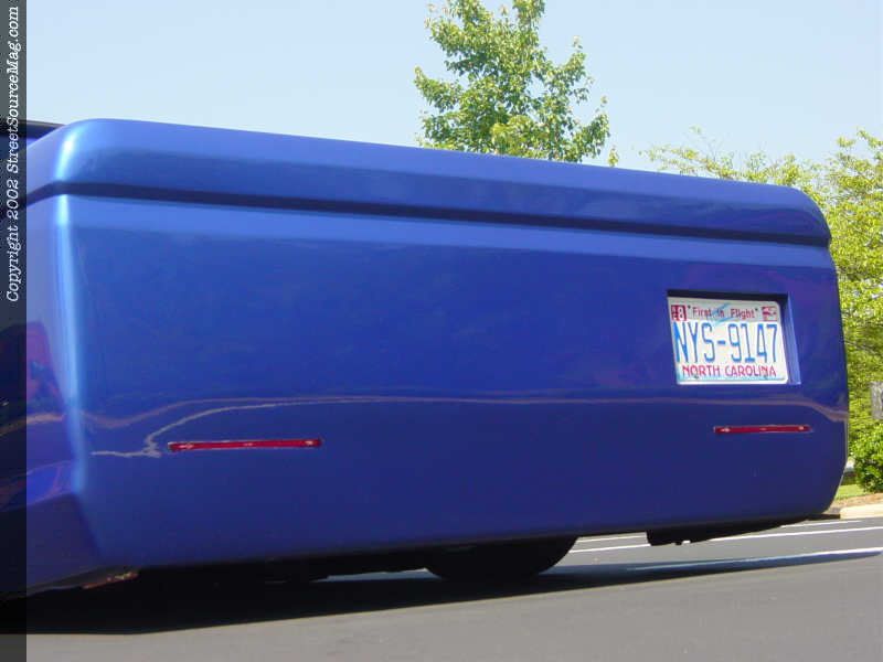 A pair of 6" led lights was installed in the roll pan and a tag box frenched into the passenger side of the tailgate to make the truck street legal. Now that the rear was taken care of, it was time to make the truck really stand out at a show. The top of the bed was completely welded shut so now the bed has all one piece.