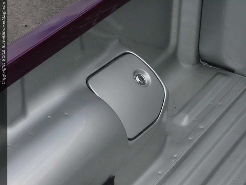 He would install a 4x4 hood with shaved squirters, 4x4 fenders with shaved parking lights and antenna hole for starters. Next a 4x4 front bumper would be installed to finish out the 4x4 sheet metal. Moving down the newfound ride, the door handles would be shaved along with the gas filler door, which would be relocated inside the bed on fender well. Continuing back, an Alter image tribal taillight conversion was welded in place and the stock taillights would be shaved. Knowing that his class is a tough one on the show curcuit, Eric wasn't done with the modifications.