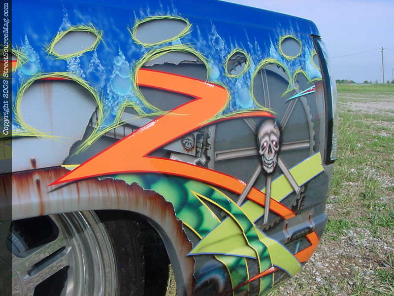 With the frame, suspension and base color painted Sparky Sportman stepped in and laid down the crazy graphics you see before you. Other exterior bolt ons consist of euro taillights, street scene mirrors and a smoothed windshield cowl.