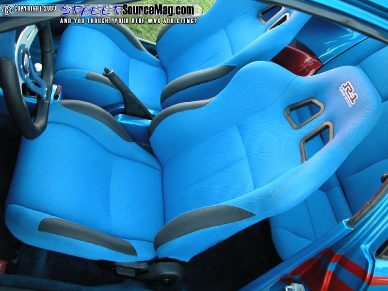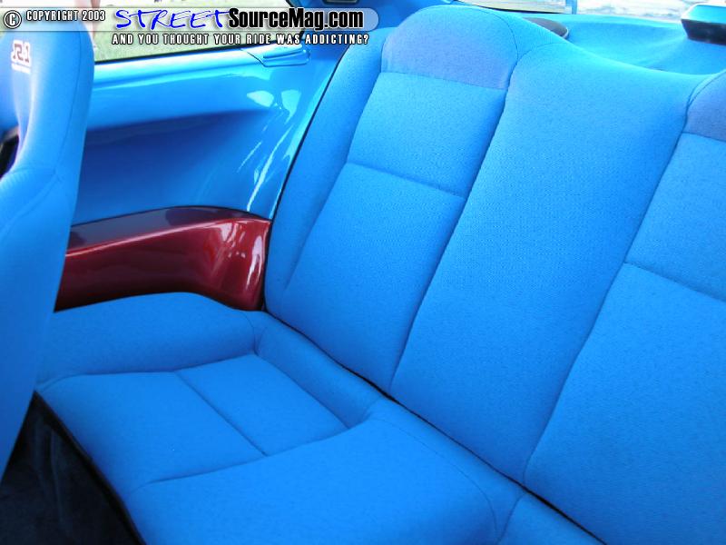 Quickly shifting from one step to the next Shanon moved on to the interior of the vehicle. He had the dashboard and various interior panels fiberglass and painted again with help of Chad Boudreaux and then turned to Deville's Seat Cover shop to have the door panels, headliner and the R1 Racing Seats wrapped in blue and black tweed.
