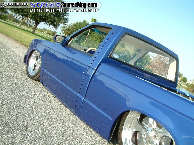 Envisioning the ultimate in low and knowing it would need to be done to gain respect through out his peers, Tony would begin by dropping the S10 off to the crew at Dezine Werks in Winston Salem, NC. While in their hands the S10 would be body dropped 3 inches.  They would install a custom 4-link along with installing a set of Toxic shocks, DJM 2 inch spindles, and manual Wildwood master cylinder along with bags at all 4 corners. A scuba bottle would be used to maintain the air, while the regulator has been bushed to 150 PSI.