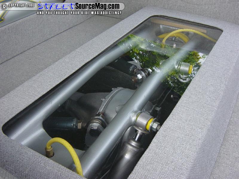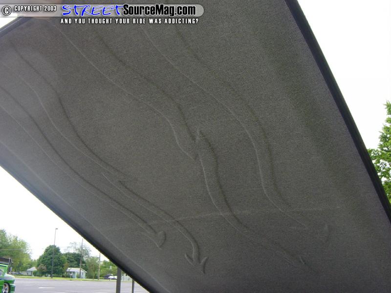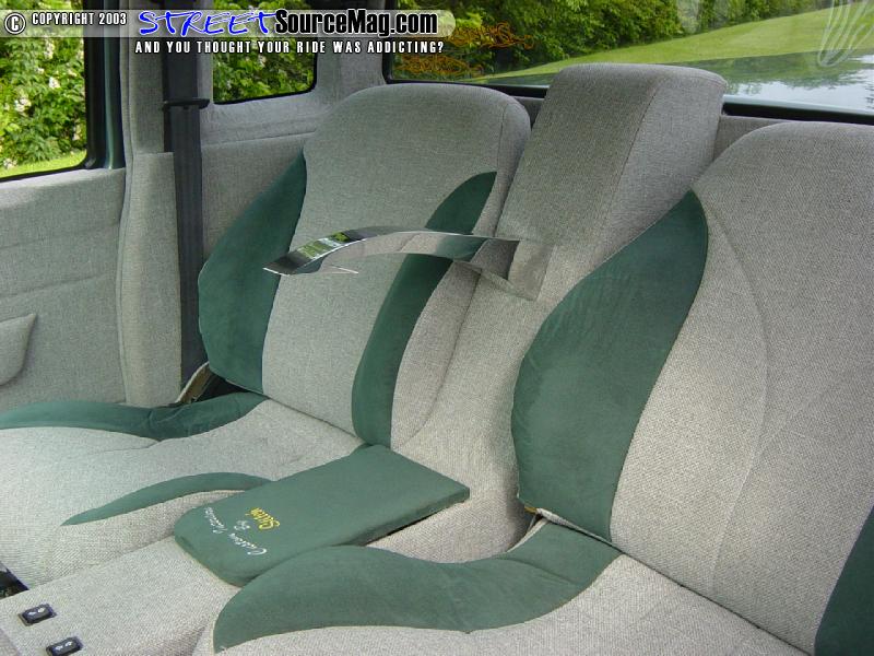 Now that the dash was done, it was time to find a pair of seats that would fit the flow of new dash. For that, Scott chose a set of front seats from a Pontiac Sunfire. The seats along with the rest of the interior was covered in gray tweed and green suede with just enough graphics throughout to bring it all together. Stitch also constructed a pair of custom door panels as well.
